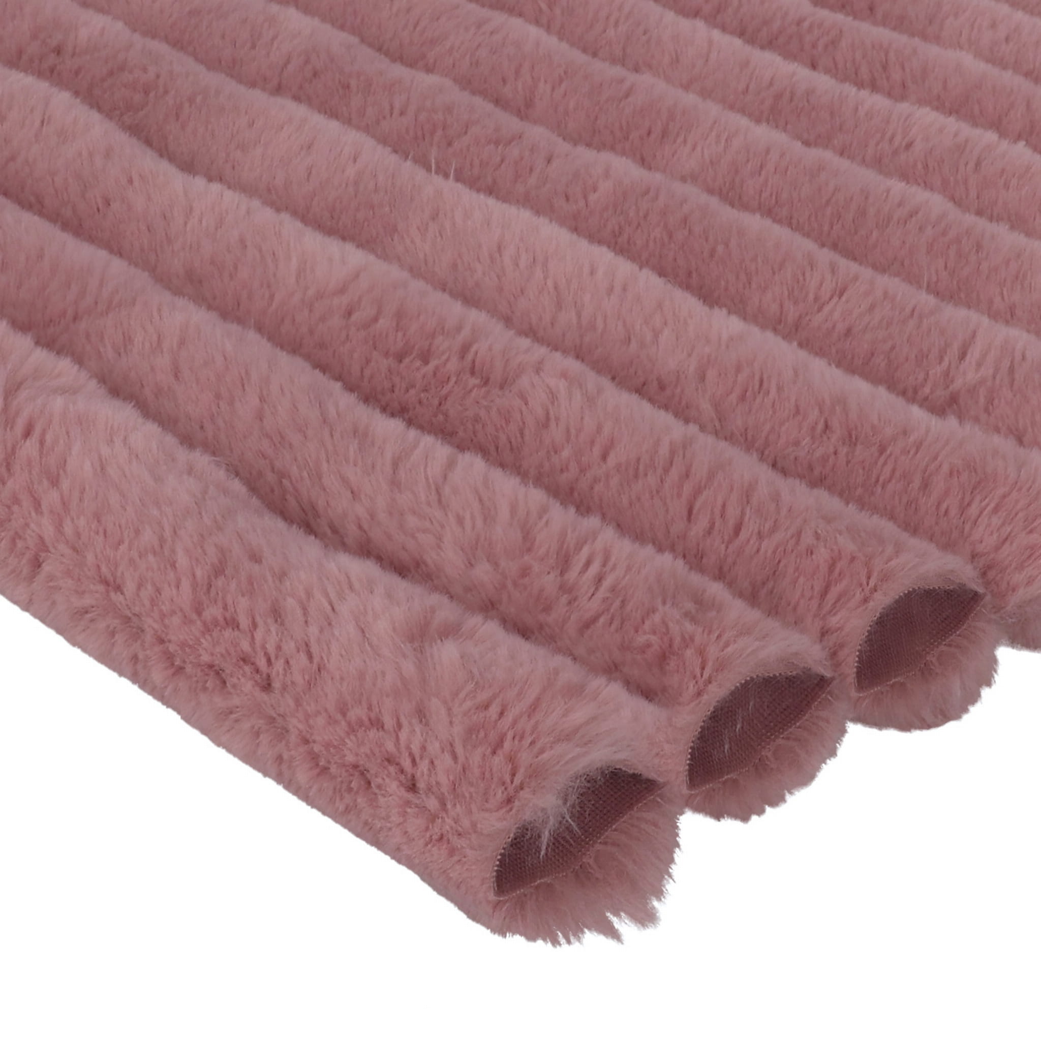 Minky Stripes is a knit fabric made of polyester fibers. It is characterized primarily by excellent thermal insulation and a soft and incredibly cozy texture. The stripes are created by subjecting the fabric to a special shearing process, which makes the fibers shorter in some places and longer in others, creating a visible and tactile striped pattern. The bristles are only on the top side; the underside of the fabric is smooth. Stripe thickness: 50 mm, pattern thickness: approximately 53 mm, bristle height at the highest point: approximately 20 mm.