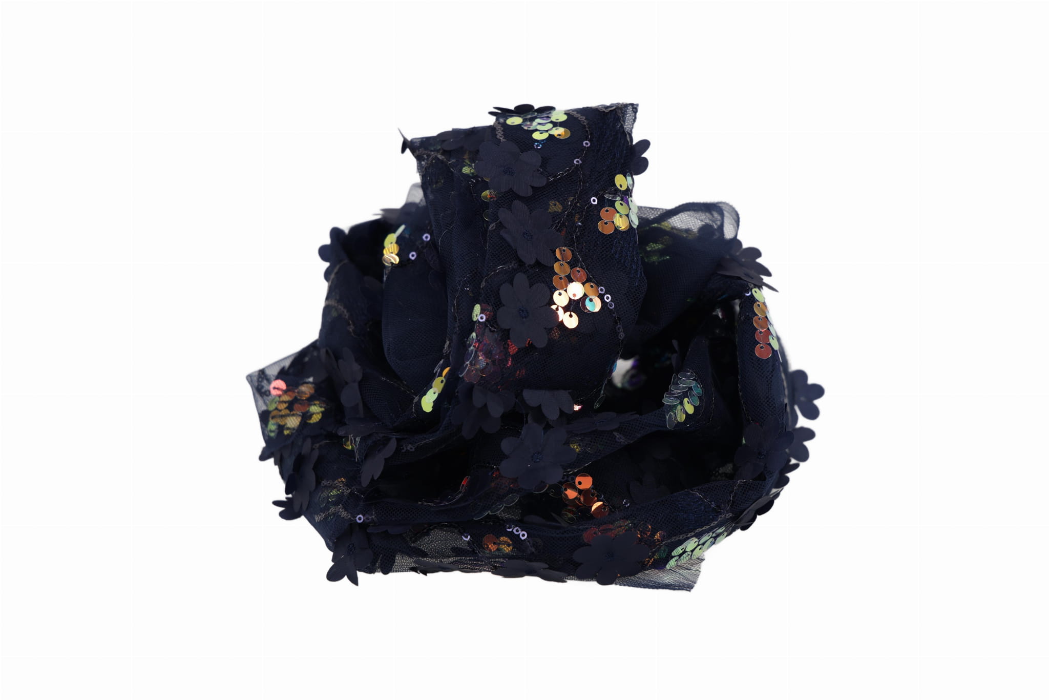 Fedezze fel a dekoratív tüllt varrott flitterekkel és textil virágokkal – egy különleges, látványos anyagot gazdag textúrával, amely magára vonja a tekintetet, és eleganciát valamint térbeli, háromdimenziós jelleget kölcsönöz az alkotásoknak. Ideális kislányruhákhoz, alkalmi és estélyi ruhákhoz, valamint lakberendezési dekorációkhoz. Az áttetsző tüll alap és a díszítő applikációk együttese luxus 3D hatást eredményez.