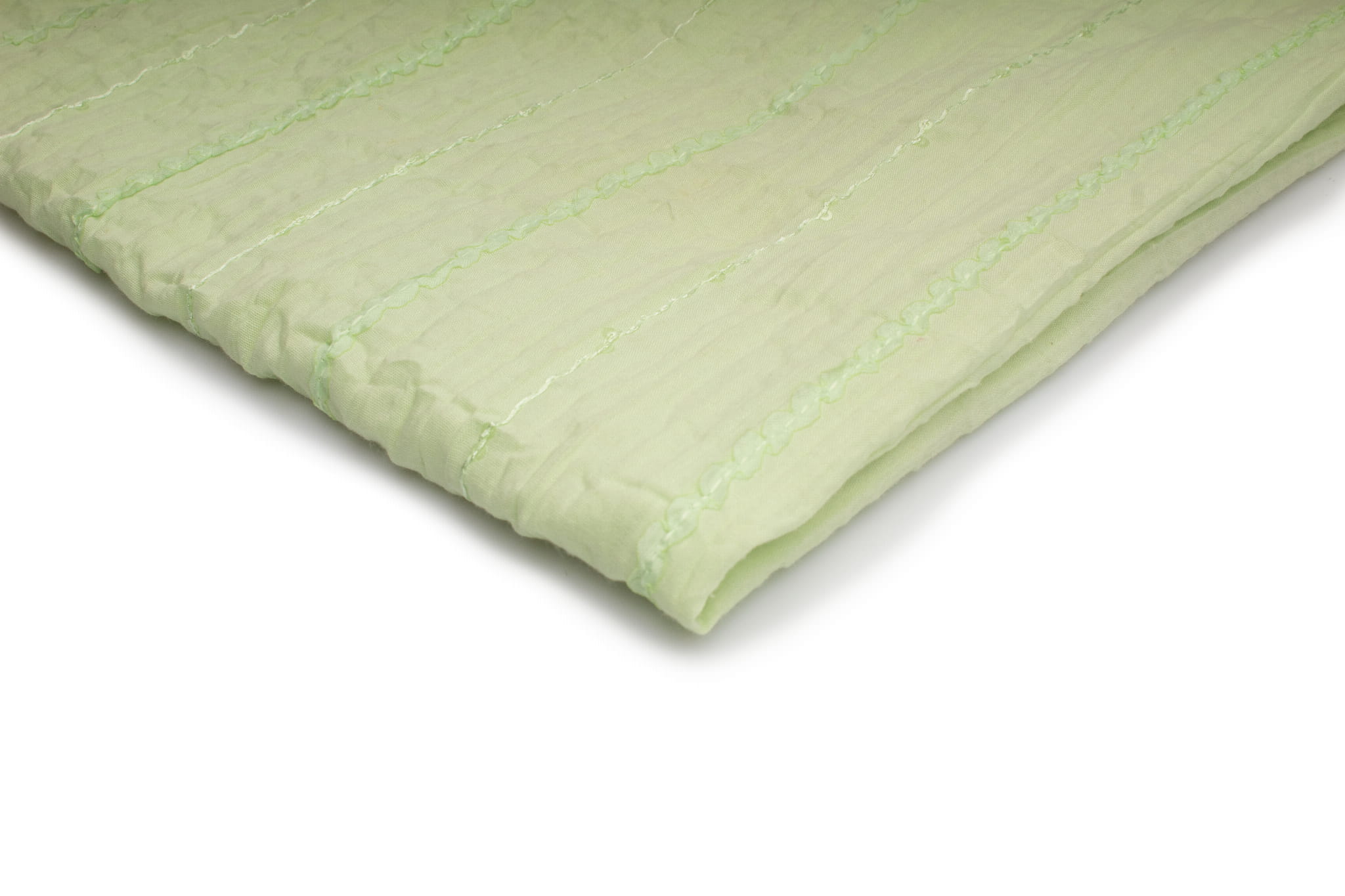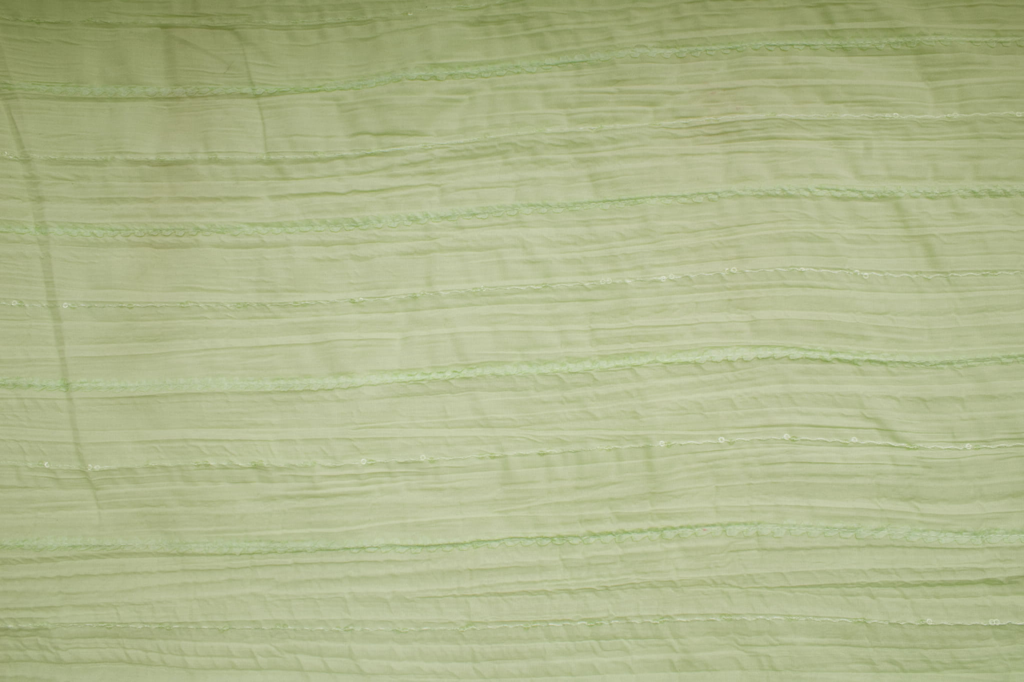 A pamut az egyik legsokoldalúbb szövet. Nagyon légáteresztő, állaga nagyon kellemes tapintású. Az anyag kifinomult szalagokkal és zsinórokkal lett gazdagítva. A megjelenést finom, színtelen, madzagra varrt flitterek egészítik ki. Az anyagot megkarcolták.