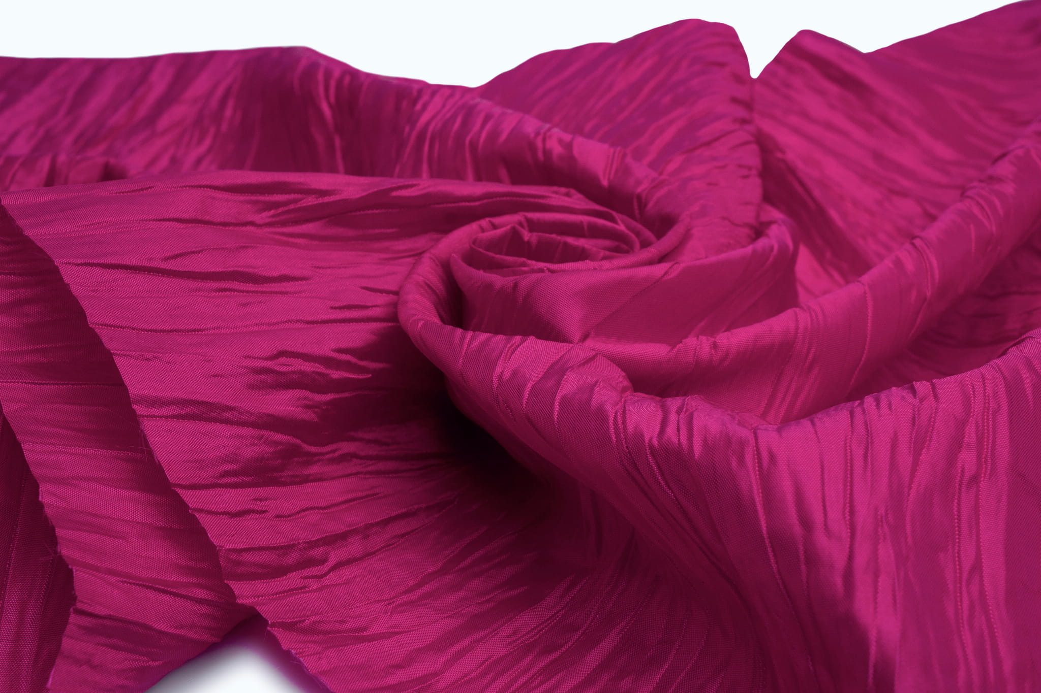 A zúzott taft egy nagyon egyedi és vizuálisan hatékony anyag. Ez a szövet gyűrődésen esett át - egy speciális anyagkezelés, amely magában foglalja a szövetek egyedi vasalását, így dekoratív gyűrődések keletkeznek. A kezelés során nagyon magas hőmérsékleten kell vasalni – elég magasan ahhoz, hogy redőket kapjon anélkül, hogy magának az anyagnak megsérülne. A gyűrődések nagyon tartósak, biztosak lehetünk benne, hogy az így kapott minta tartósan díszíti majd az anyagot.