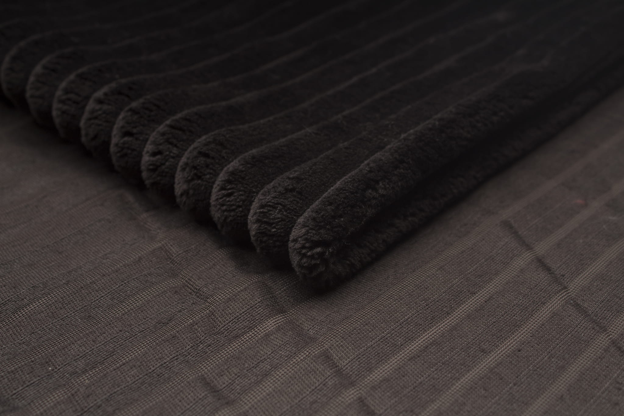 Minky Stripes je pletená látka vyrobená z polyesterových vlákien. Vyznačuje sa predovšetkým veľmi dobrou tepelnou izoláciou a jemnou a mimoriadne útulnou textúrou materiálu. Navrchu sú štetiny orezané tak, aby vytvorili ozdobné pruhy. Spodná strana úpletu je hladká. Hrúbka pruhu: 15 mm, hrúbka vzoru: približne 18 mm, výška štetín v najvyššom bode: približne 7 mm.