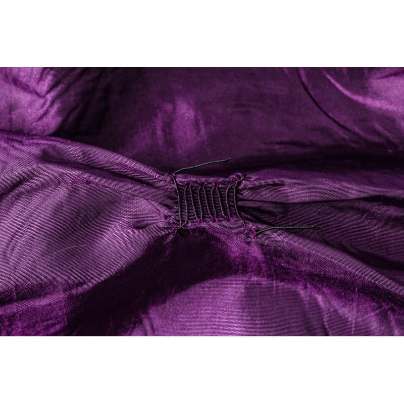 Тафта — це дуже розкішний і дуже візуально ефектний матеріал. Він жорсткий і шелестить, з блискучою поверхнею. Оборки, створені пришиванням гумових ниток, надають ефект об’ємних ромбів. Усі ці особливості роблять тканину унікальною та цікавою.